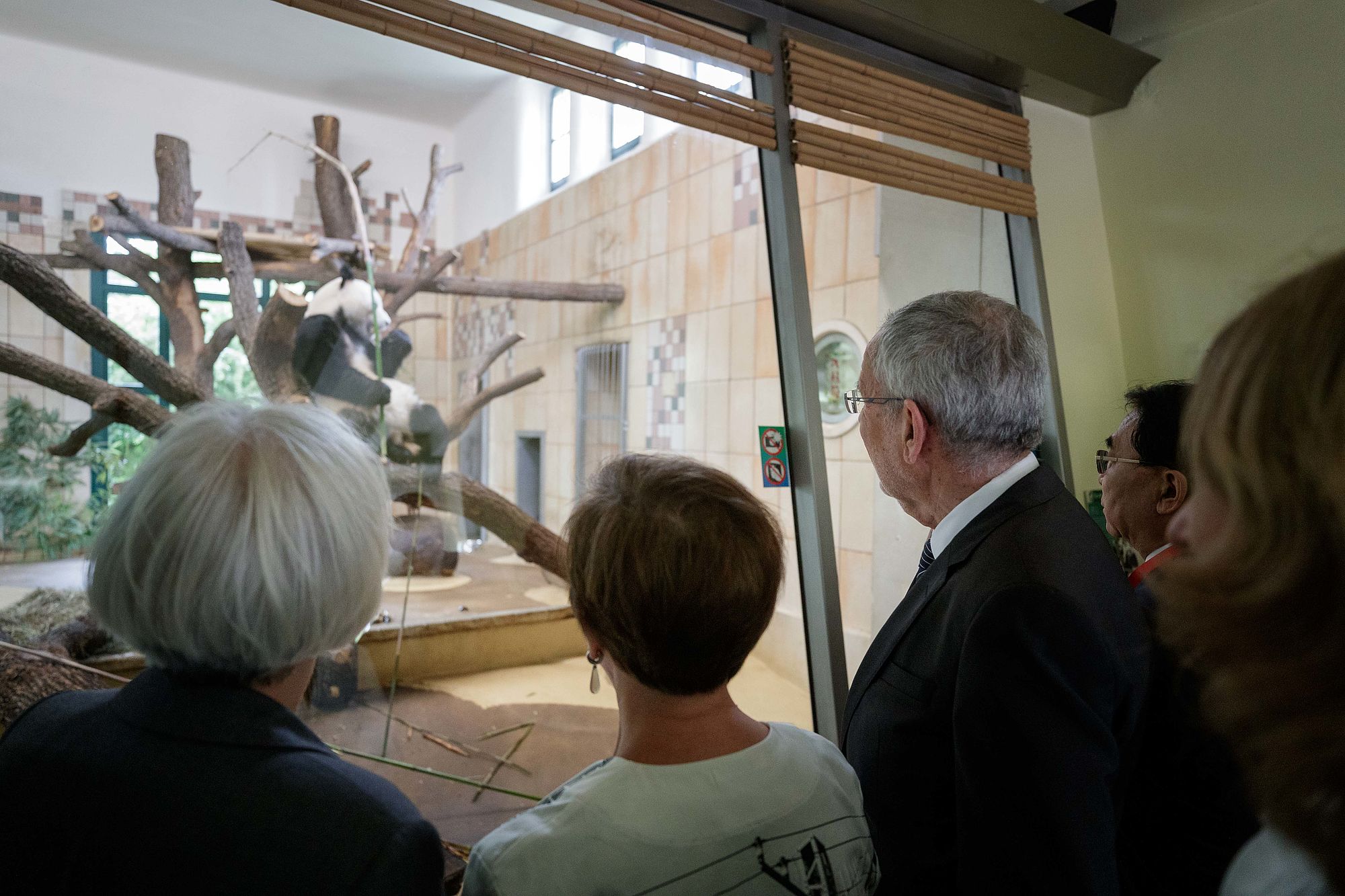 Im Kaiserpavillon wurden die offiziellen Unterlagen des Großen Pandas übergeben. Bundespräsident Van der Bellen nahm sich während der Regierungskrise Zeit, um das Panda-Männchen in Wien willkommen zu heißen. Alle Pandabären im Tiergarten sind Leihgaben. Der Bundespräsident attestierte den aus China stammenden Pandas eine "gewisse diplomatische Mission", die sie zu erfüllen hätten und sah sie als "Symbol der Freundschaft" zwischen Österreich und der Volksrepublik China. Laut dem Bundespräsidenten sei es nicht selbstverständlich, dass China die Besucherlieblinge Österreich zur Verfügung stelle. "Wir wissen es sehr zu schätzen. Yuan Yuan ist hier in besten Händen", sagte Alexander Van der Bellen.