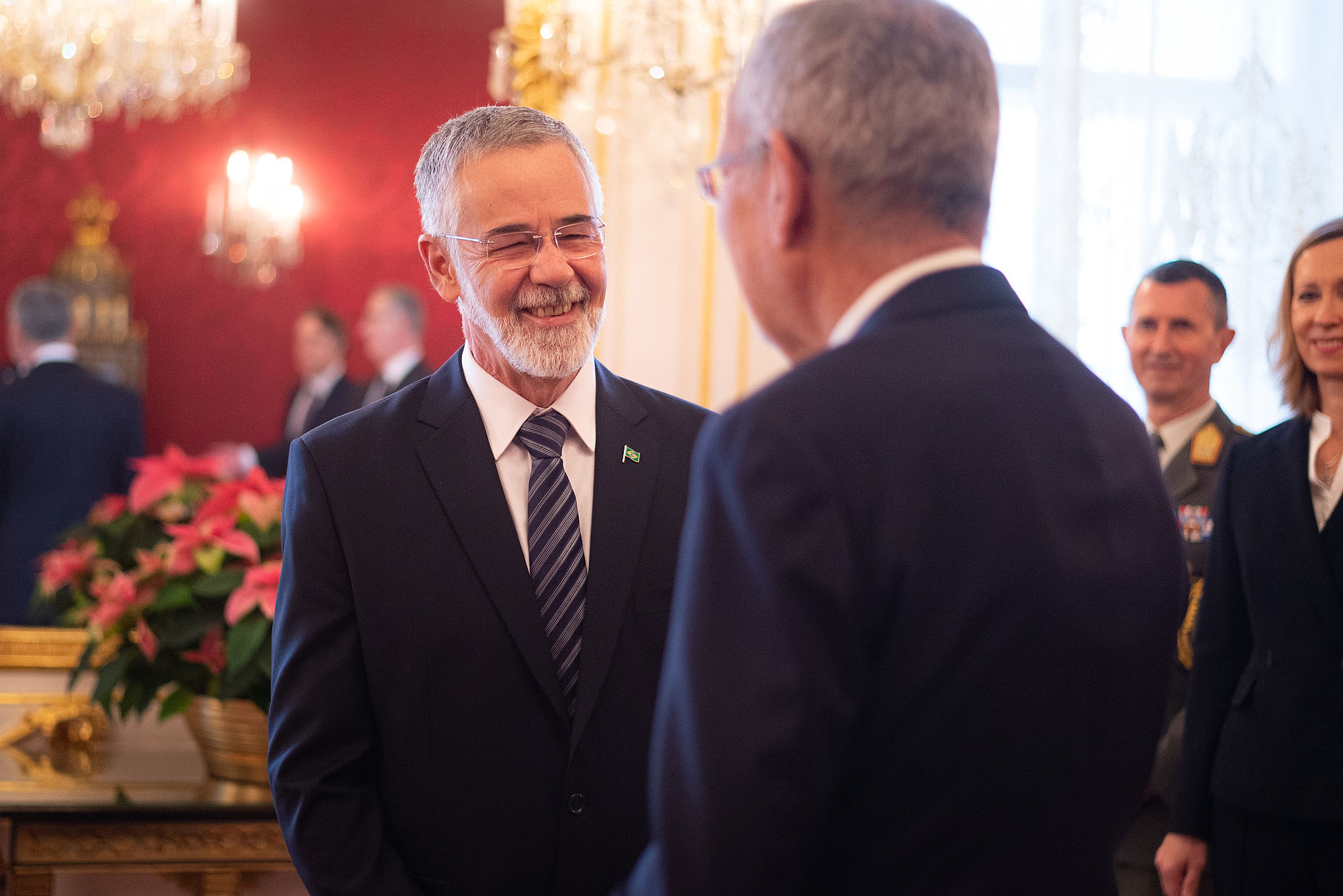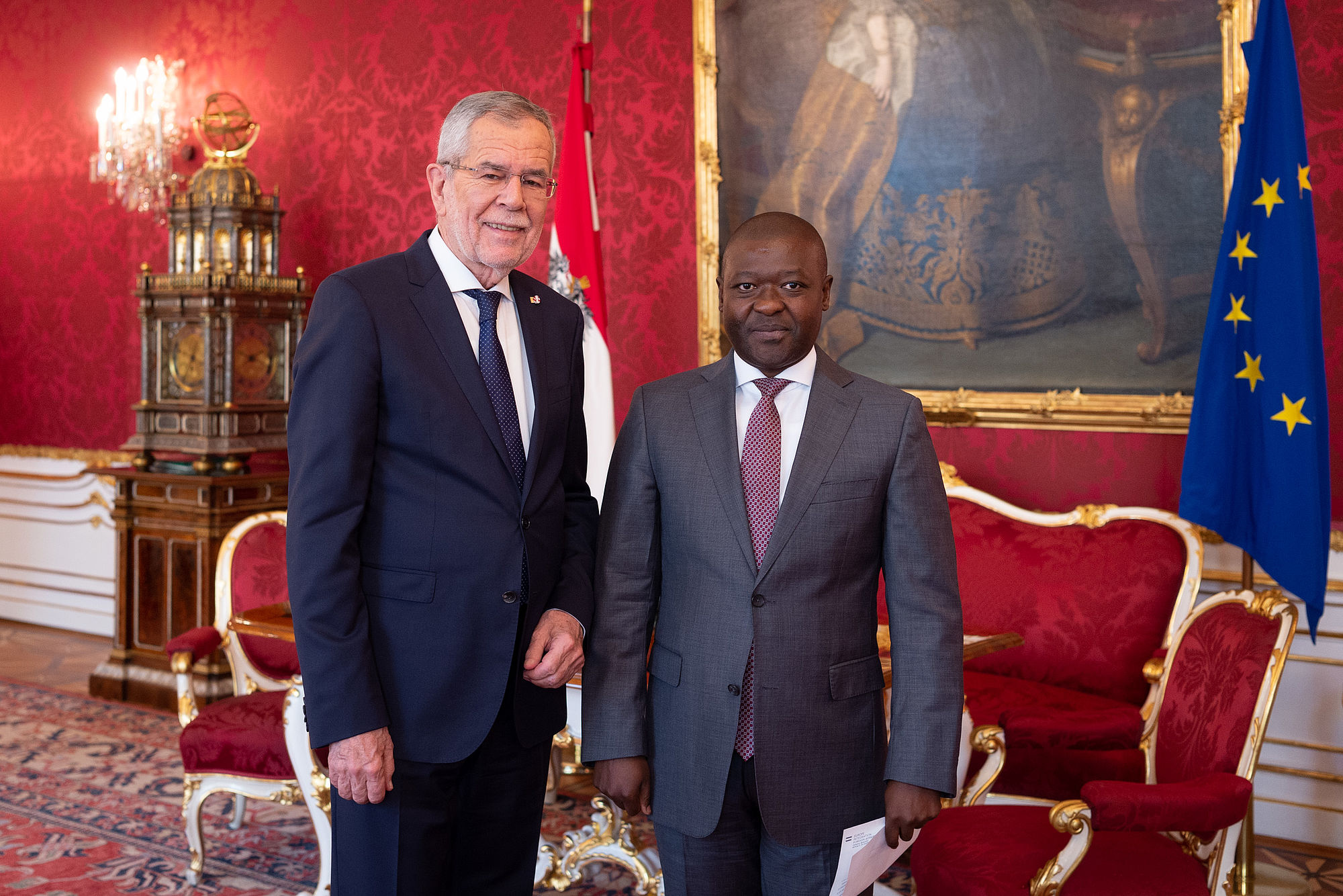 Den neu ernannten Botschafter von Georgien, David Dondua, den Botschafter der Republik Litauen, Donatas Kušlys, den Botschafter der Föderativen Republik Brasilien, José Antonio Marcondes de Carvalho, den Botschafter der Republik Guatemala, Manuel Estuardo Roldán Barillas, den Botschafter der Republik Togo, Komi Bayédzè Dagoh, den Botschafter der Republik Ghana, Ramses Joseph Cleland und den Botschafter des Königreichs Lesotho, Retselisitsoe Calvin Masenyetse. Abschließend wurde die neu ernannte Botschafterin der Republik Liberia, Youngor Sevelee Telewoda, vom Bundespräsidenten empfangen.