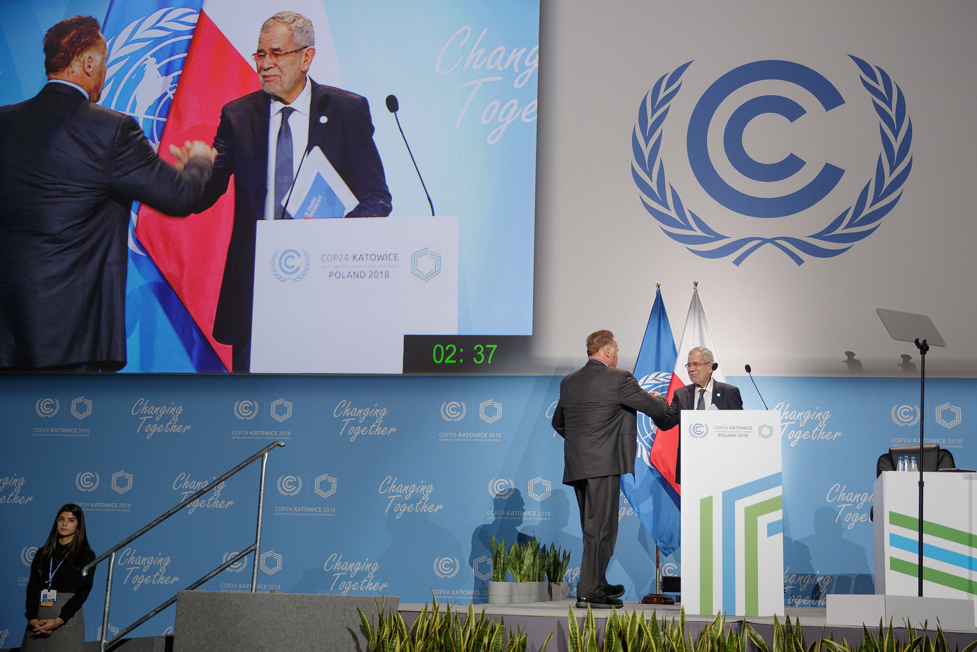 Bundespräsident Alexander Van der Bellen appelliert bei Klimakonferenz COP24 in Katowice für mehr Klimaschutz und stellt seine COP 24-Initiative vor