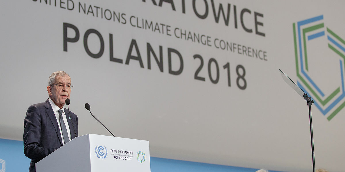 Der Bundespräsident stellte vor den Delegierten seine COP24-Initiative vor. Der Appell für mehr Klimaschutz wurde inzwischen von 18 europäischen Staatsoberhäuptern bzw. Regierungschefs unterzeichnet. Alexander Van der Bellen kann sich vorstellen, dass dieses Netzwerk auch nach der COP24 bestehen bleibt.