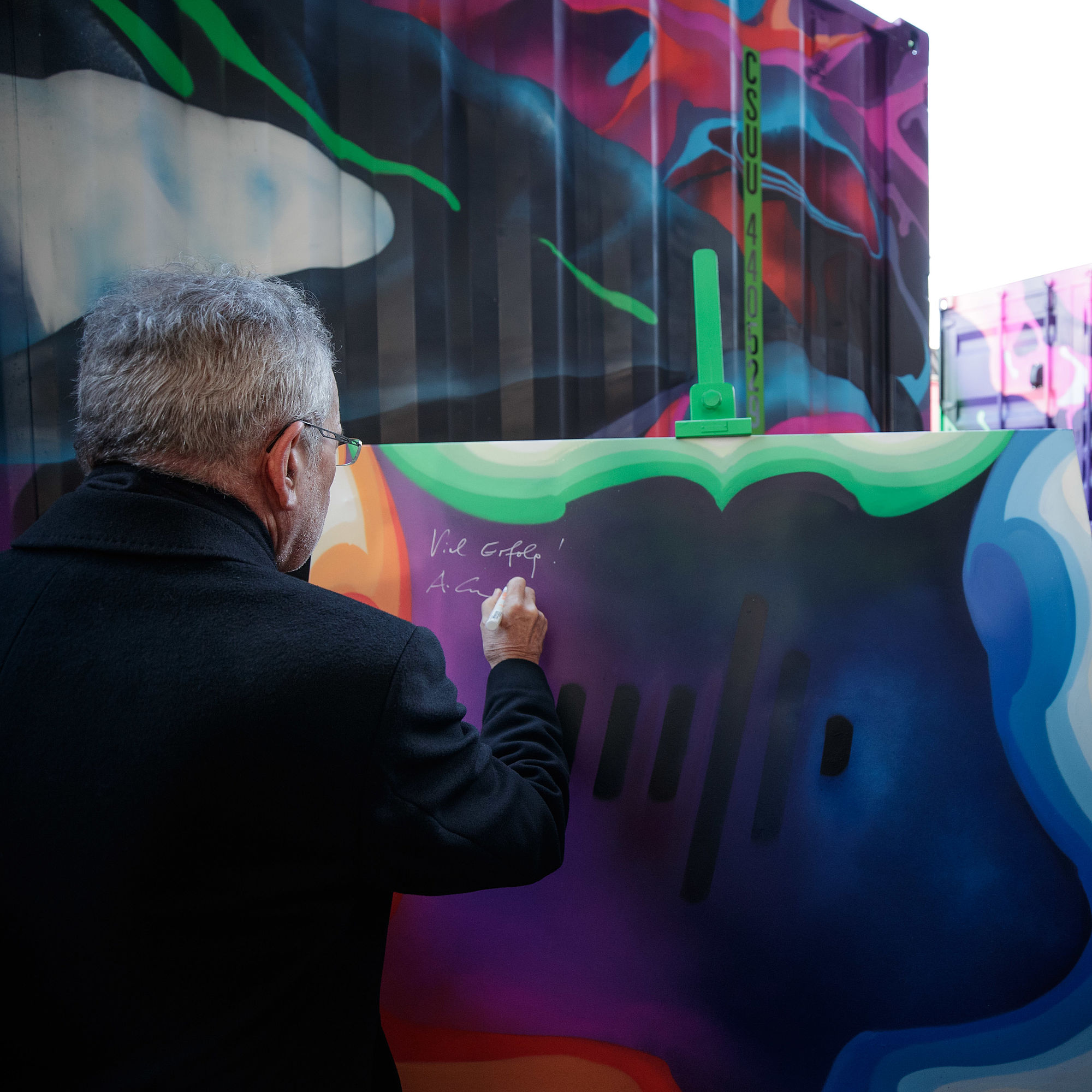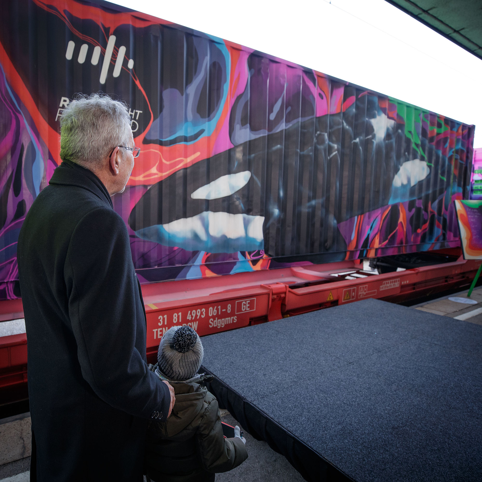 Der Zug soll - in Anlehnung an Noahs Arche - als "Klimabotschafter" die Bedeutung des Bahn-Güterverkehrs zur Vermeidung von Treibhausgasen und damit als wichtigen Beitrag gegen den Klimawandel symbolisieren. Vom Ausgangspunkt Katowice, wo im Dezember des Vorjahres die Weltklimakonferenz stattfand, kam der Container-Zug jetzt zur ersten Station nach Wien, weiter geht's dann nach Berlin, Paris und Brüssel. In Wien wurden zwei der ursprünglich knallgrünen Container vom Graffitikünstler Paul Hoffman von der Agentur Concrete farbenfroh gestaltet, dem Motto entsprechend mit Tiermotiven wie einem Orca-Wal, Flamingos und einem Chamäleon.