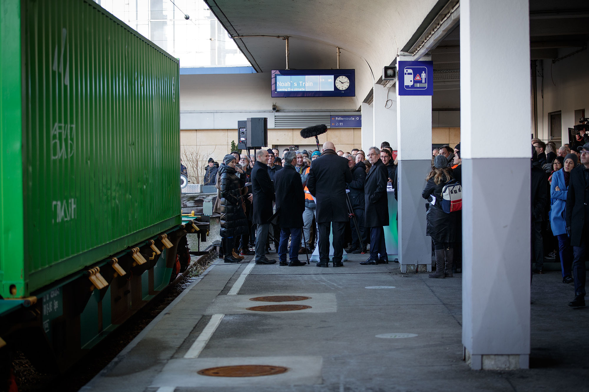 "Noah's Train" nennt sich ein Güterzug, der quer durch Europa fährt und die Verlagerung des Transports von der Straße auf die Schiene vorantreiben soll. Am Wiener Westbahnhof haben Bundespräsident Alexander Van der Bellen und Verkehrsminister Norbert Hofer die europäische Klimaschutz-Initiative von "Rail Freight Forward", einem Zusammenschluss europäischer Güterbahnen, unterstützt.