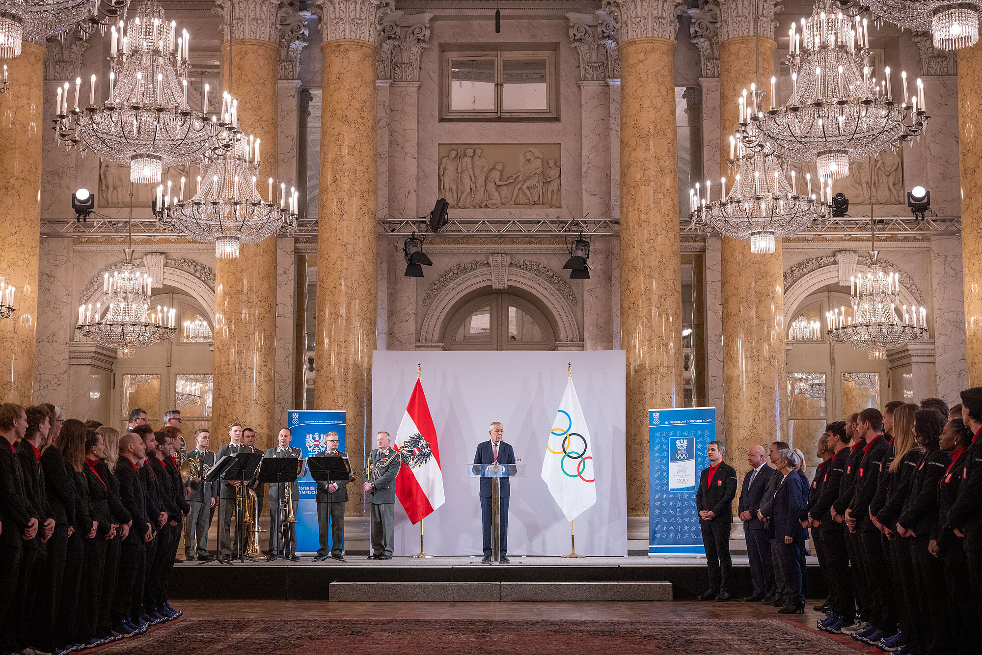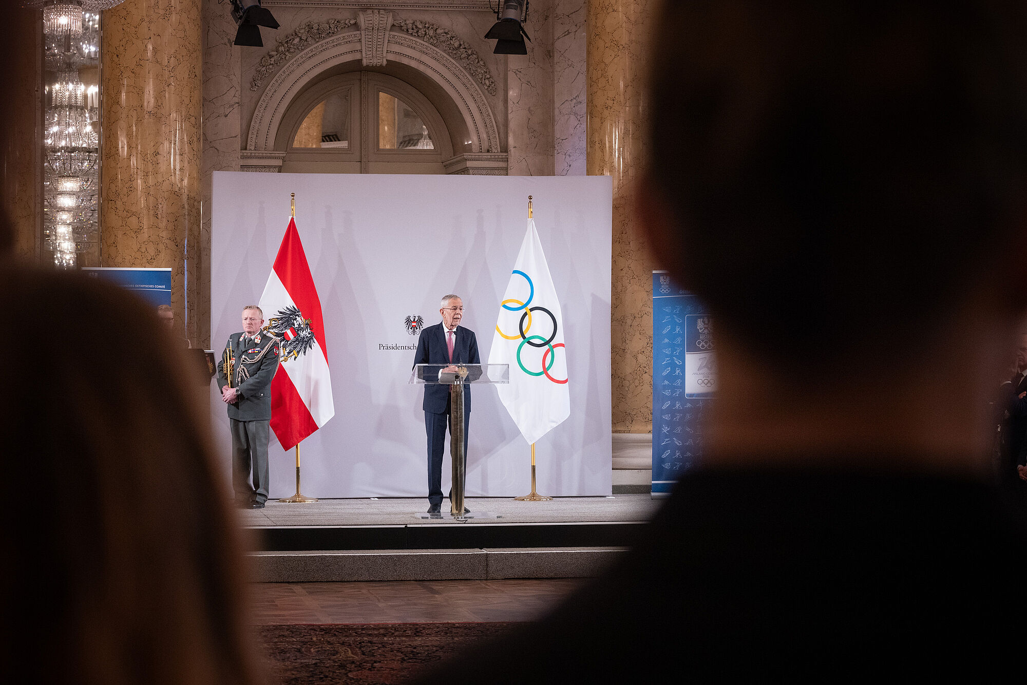 Sport und seine Spitzenathletinnen und Athleten können als Vorbild dienen. "Wenn wir beim sportlichen Kräftemessen, selbst im direkten Gegeneinander ein Miteinander finden können, dann können wir es überall. Sie verkörpern diesen Olympischen Gedanken, wie man gemeinsame Regeln beachtet, wie man respektvoll miteinander umgeht, egal welche Flagge man selbst oder das Gegenüber auf dem Sportanzug trägt. Da sind Sie Vorbilder, Vorbilder im Sport, als Menschen, als Gemeinschaft", sagte Alexander Van der Bellen.
