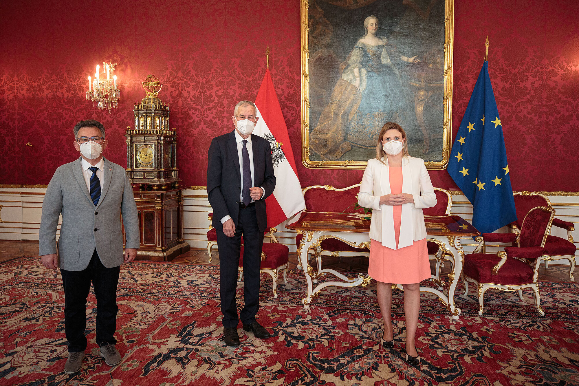 Bundespräsident Alexander Van der Bellen empfing im Beisein von Bundesministerin Susanne Raab die Vorsitzenden und stv. Vorsitzenden der österreichischen Volksgruppenbeiräte zu einem Meinungsaustausch. Angesprochen wurden dabei aktuelle Themen wie die Umsetzung der im Vorjahr erhöhten Fördermittel für die Volksgruppen. Besprochen wurden auch Fragen der mehrsprachigen Bildung in den Kindergärten und Schulen sowie die Sichtbarmachung der Volksgruppen in den Medien.