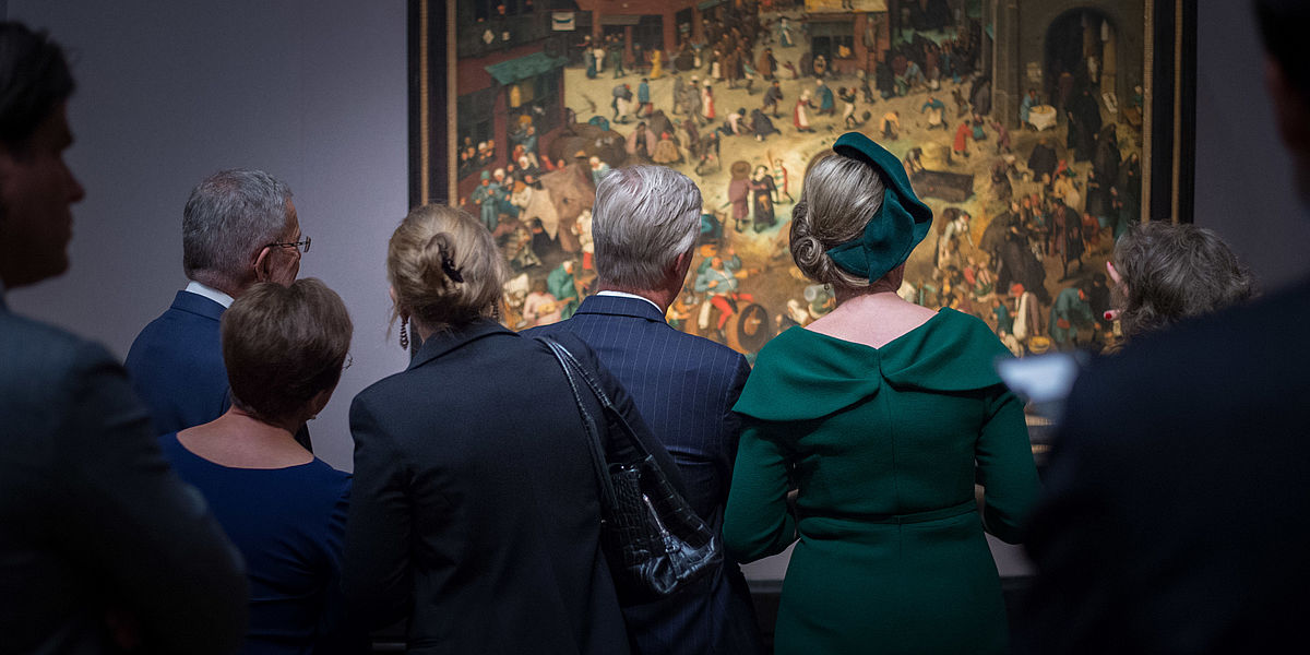 "Belgier fühlen sich in diesem wunderbaren Museum wie zu Hause", meinte König Philippe. Schließlich treffe man in der Gemäldegalerie auf Schritt und Tritt auf Werke, die in seiner Heimat entstanden seien. Die wunderbare Ausstellung bringe nicht nur zwei Länder, die eine vielfältige gemeinsame Geschichte hätten, erneut nahe zusammen und gebe tiefen Einblick in das Leben der Vergangenheit, sondern zeige auch, wie sehr Kunst und Kultur das Verständnis für einander förderten. Herzlich lud der belgische König die Anwesenden ein, das Bruegel-Jahr 2019 in Belgien zu besuchen.