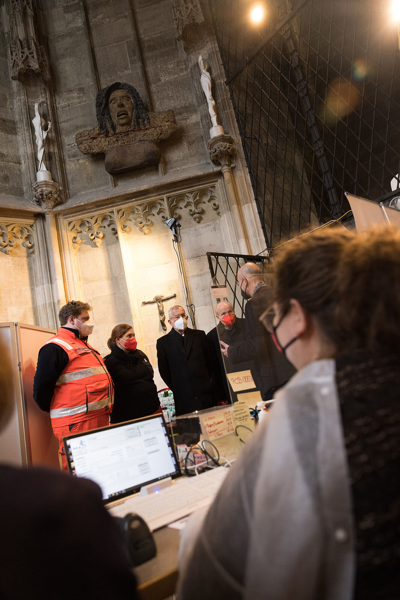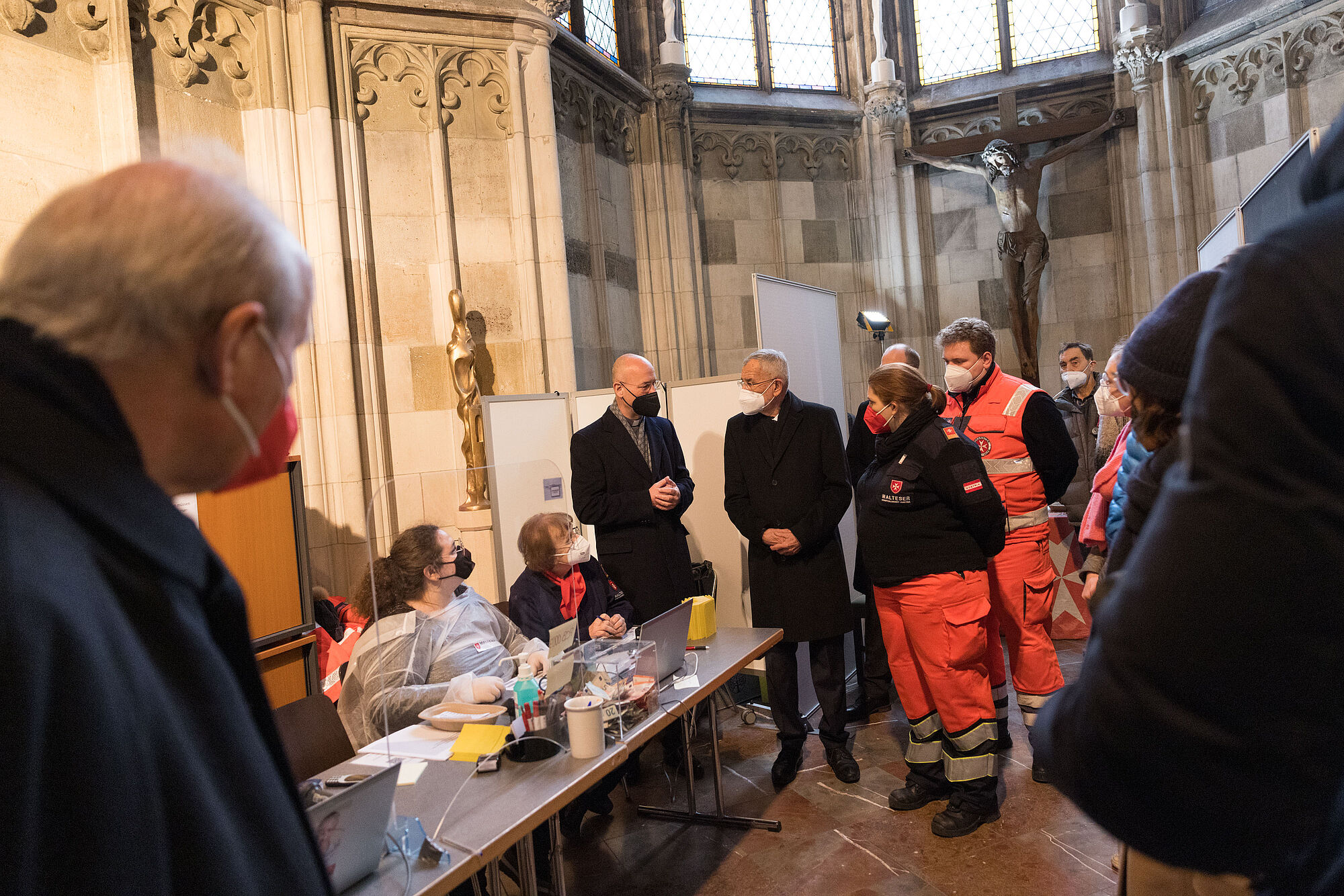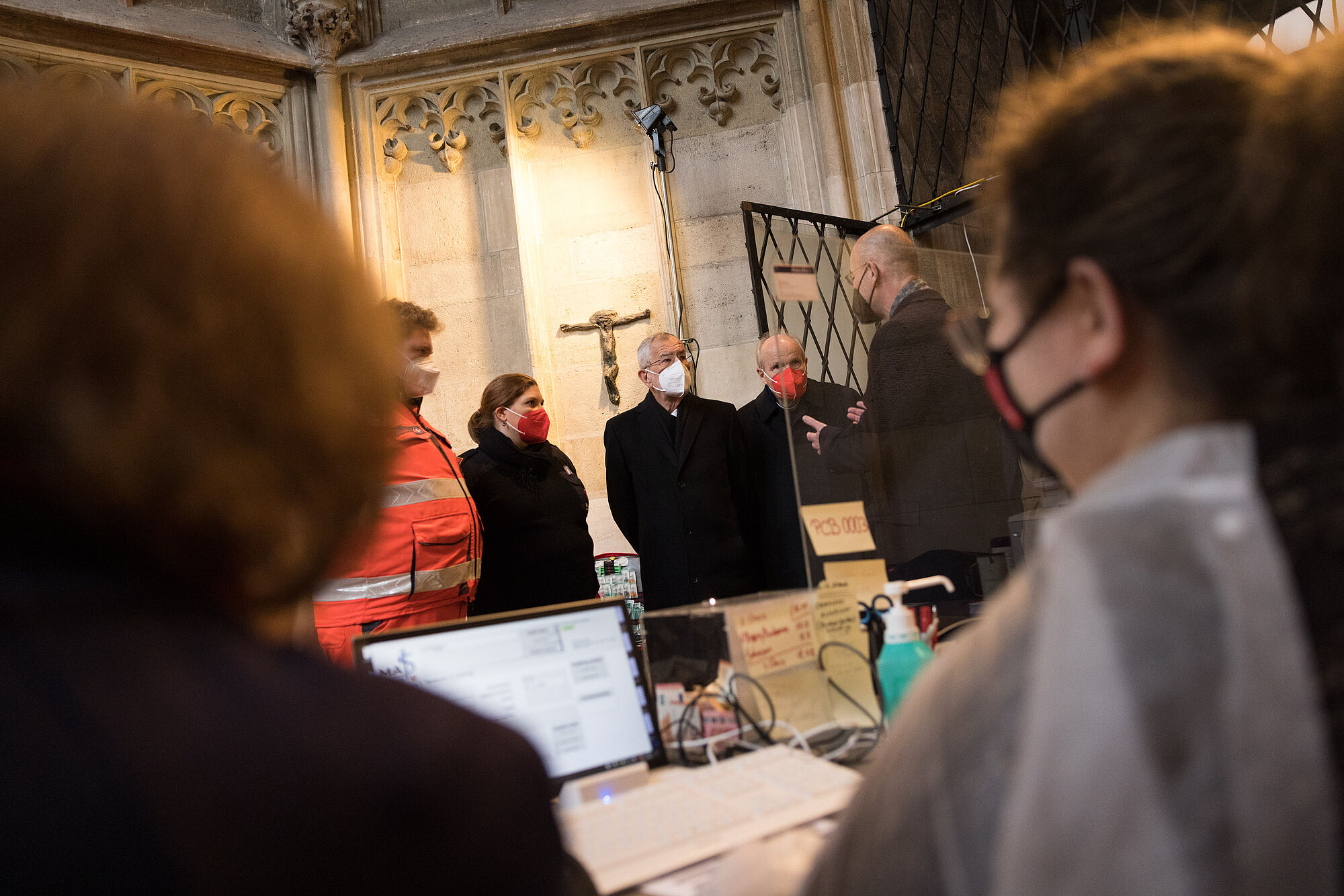 Alexander Van der Bellen und Christoph Schönborn besuchten die Impfstraße im Stephansdom.