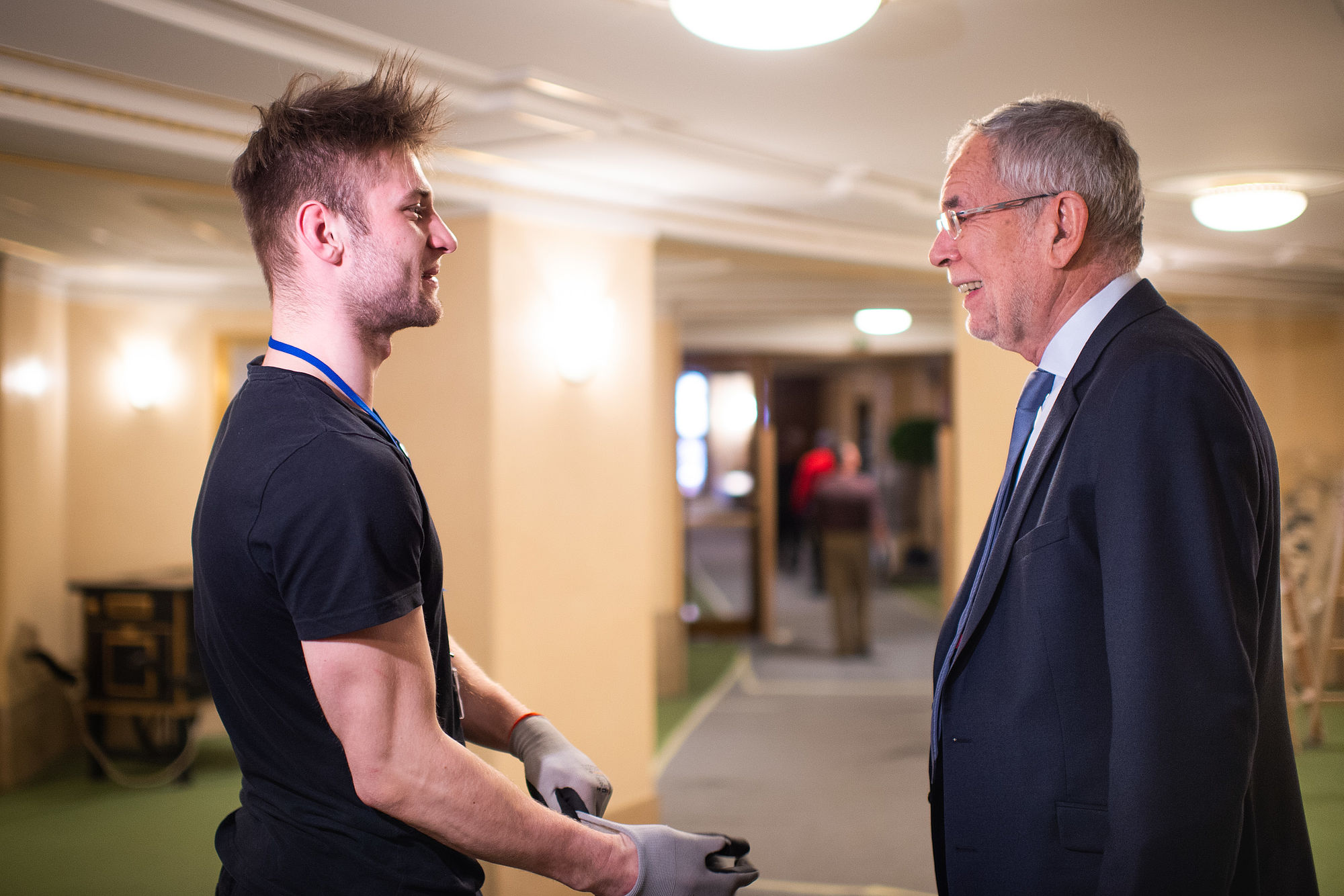 Alexander Van der Bellen bei den Aufbauarbeiten für den Opernball 26. Februar 2019