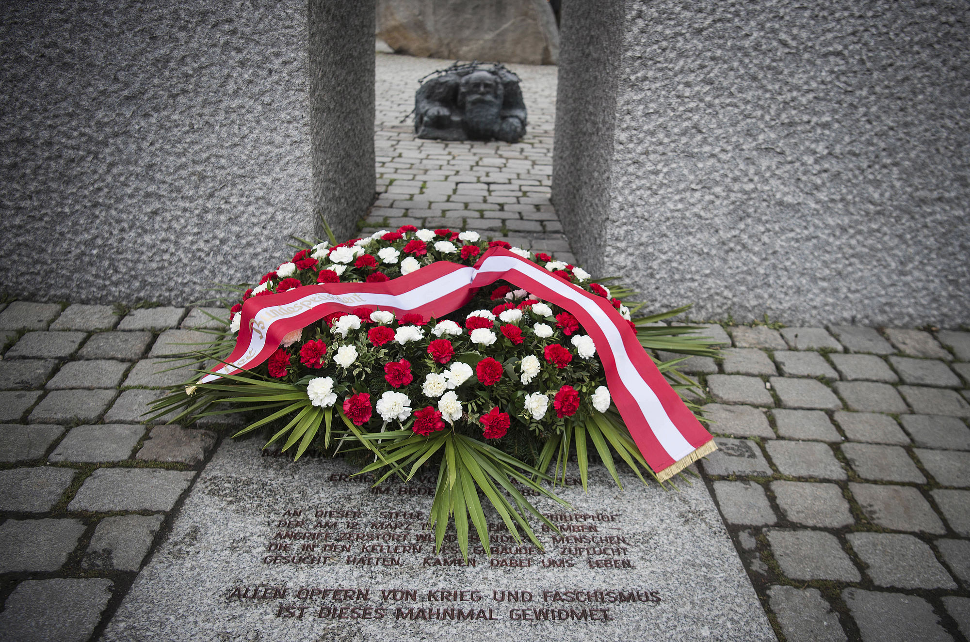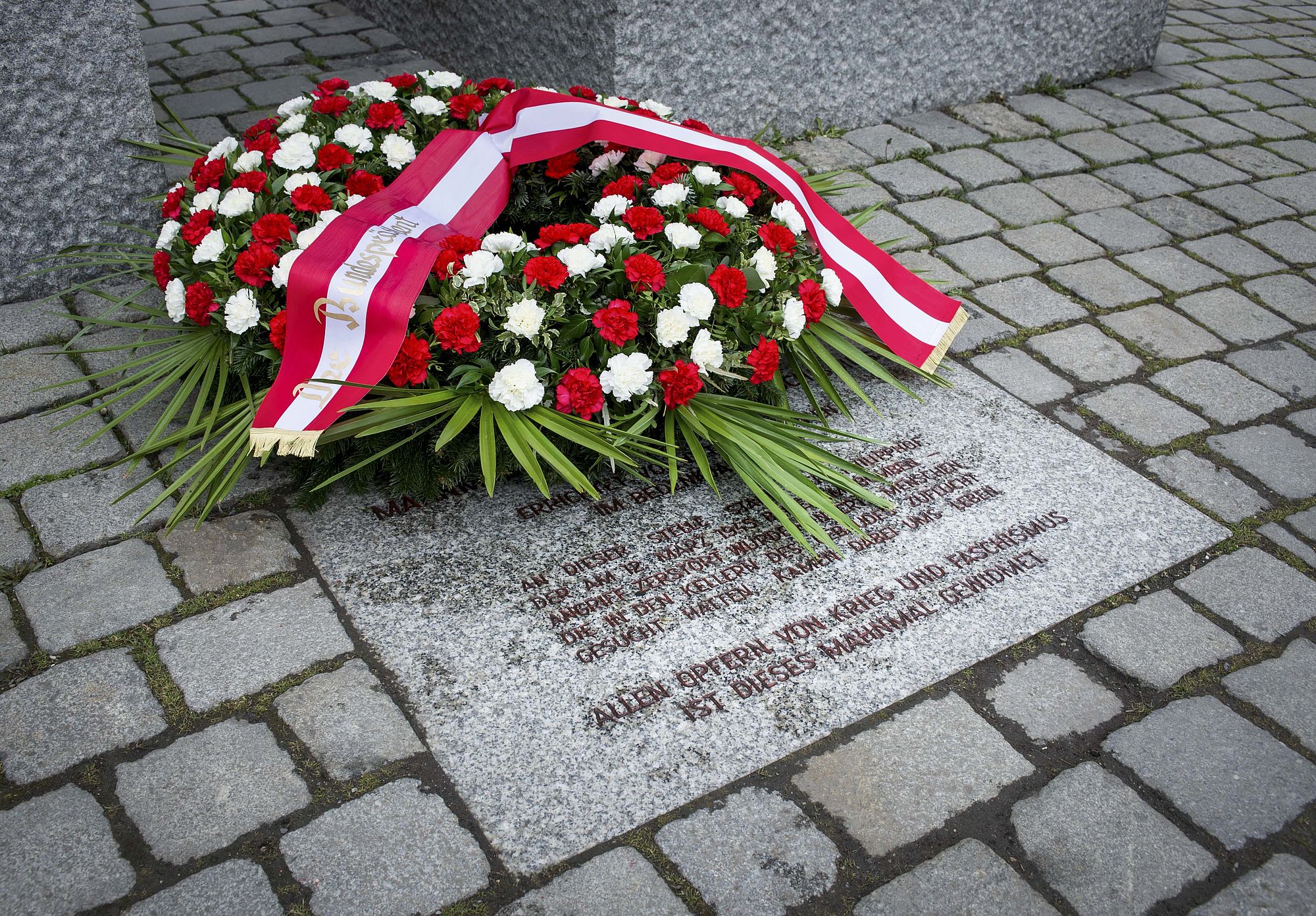 Kranzniederlegung zum 12. März 1938 beim Mahnmal gegen Krieg und Faschismus