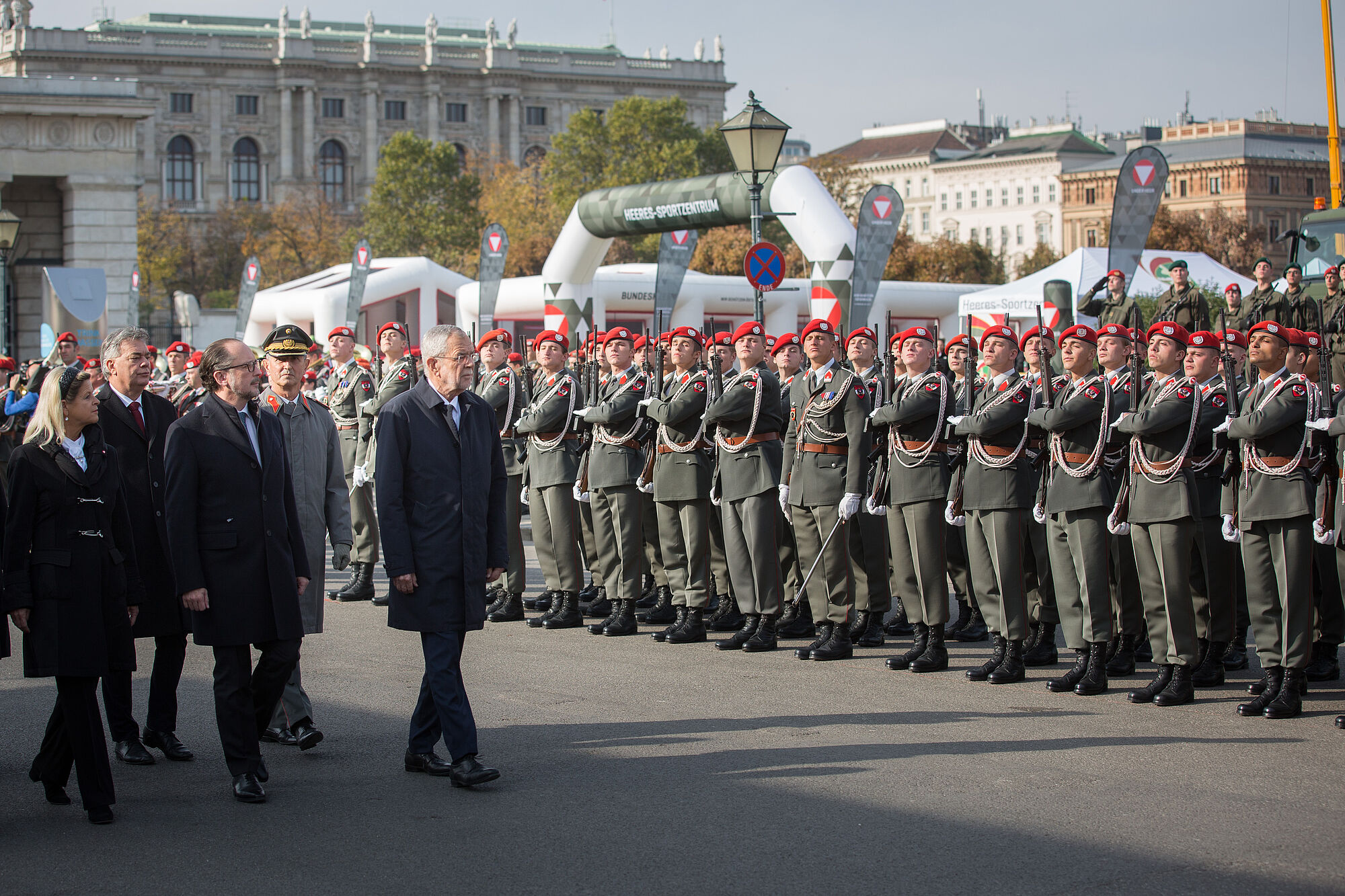 Nationalfeiertag 2021: Kranzniederlegung - Angelobung der Rekruten - Impfburgtraße in der Hofburg