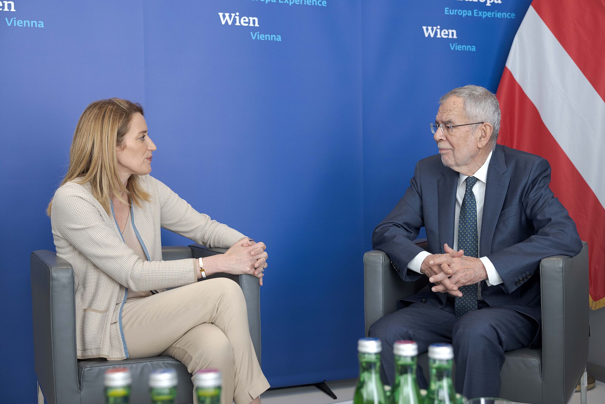 Ausstellungseröffnung "Erlebnis Europa" mit Europaparlamentspräsidentin Roberta Metsola 26. Mai 2023